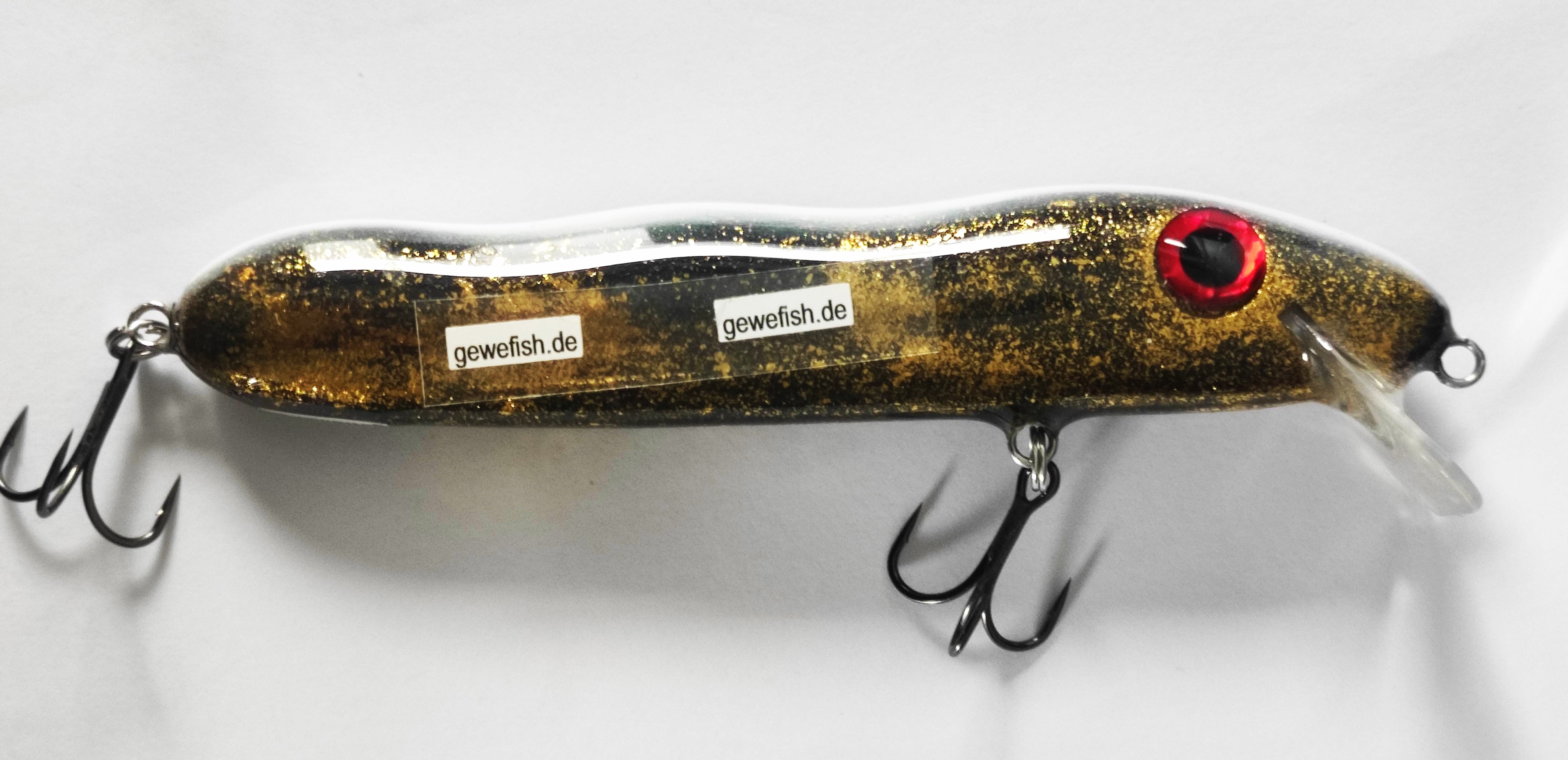 Startseite » Gewefish-Produkte » Gewefish- Hardbaits » Gewefish Spezi-Wobbler 12cm » Custom-Gewefish-Spezi-Wobbler, 12cm, Floating, black and gold